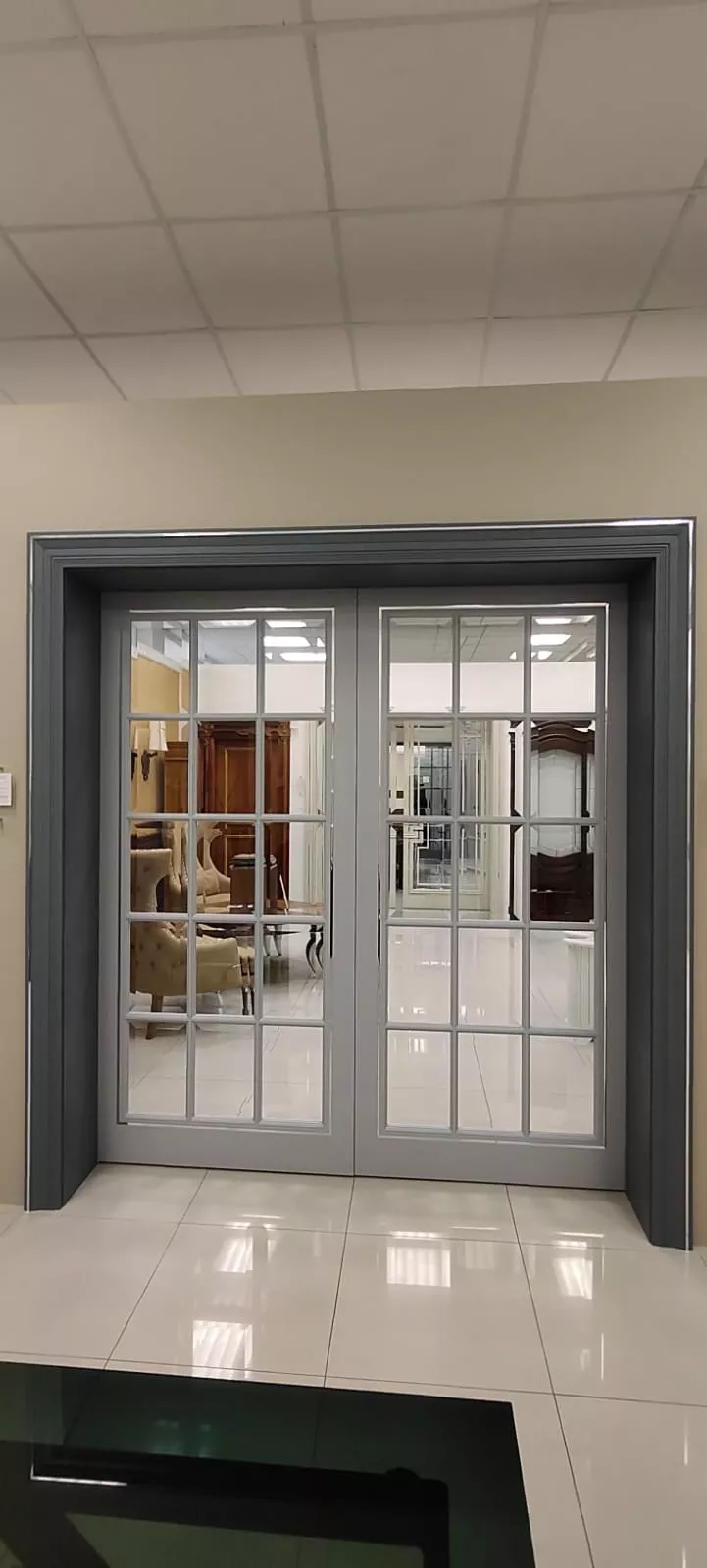 пантографирования, с правильными пропорциями. Два вертикальных руста подчеркивают их красоту. Для полотен под стекло предлагаются различные варианты стекол. Стекла устанавливаются с помощью фигурного штапика. Доступна модель с «английской решеткой». Различные варианты окрашивания делают двери важным элементом в интерьере, а при желании – акцентом.