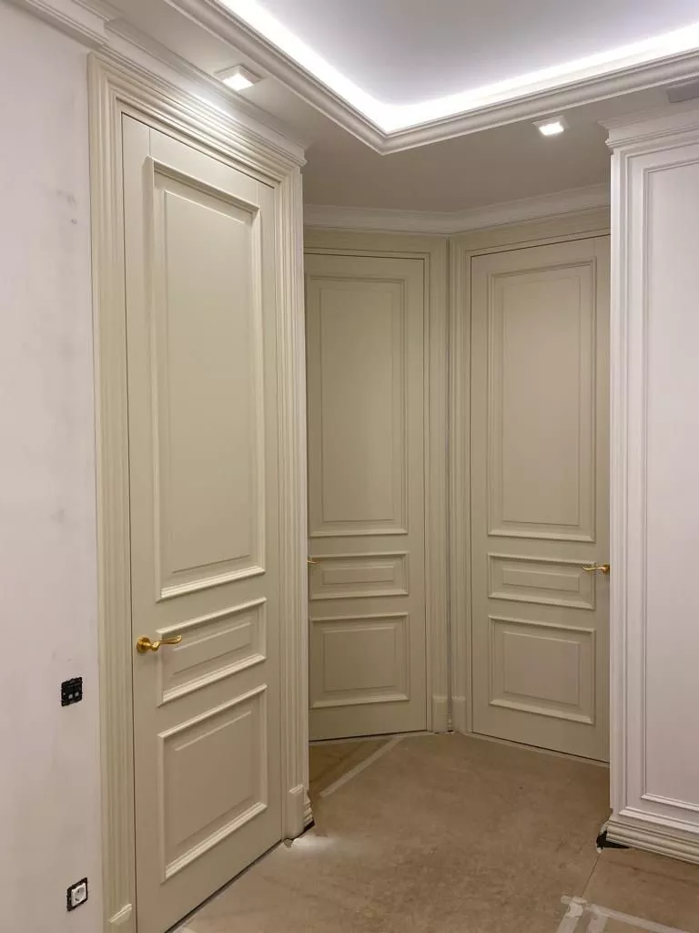 - Классика: Двери с багетными элементами или фрезерованные, с декоративными вставками в виде стекла или молдингов. С элементами серебрения, золочения, патинирования или DECO.