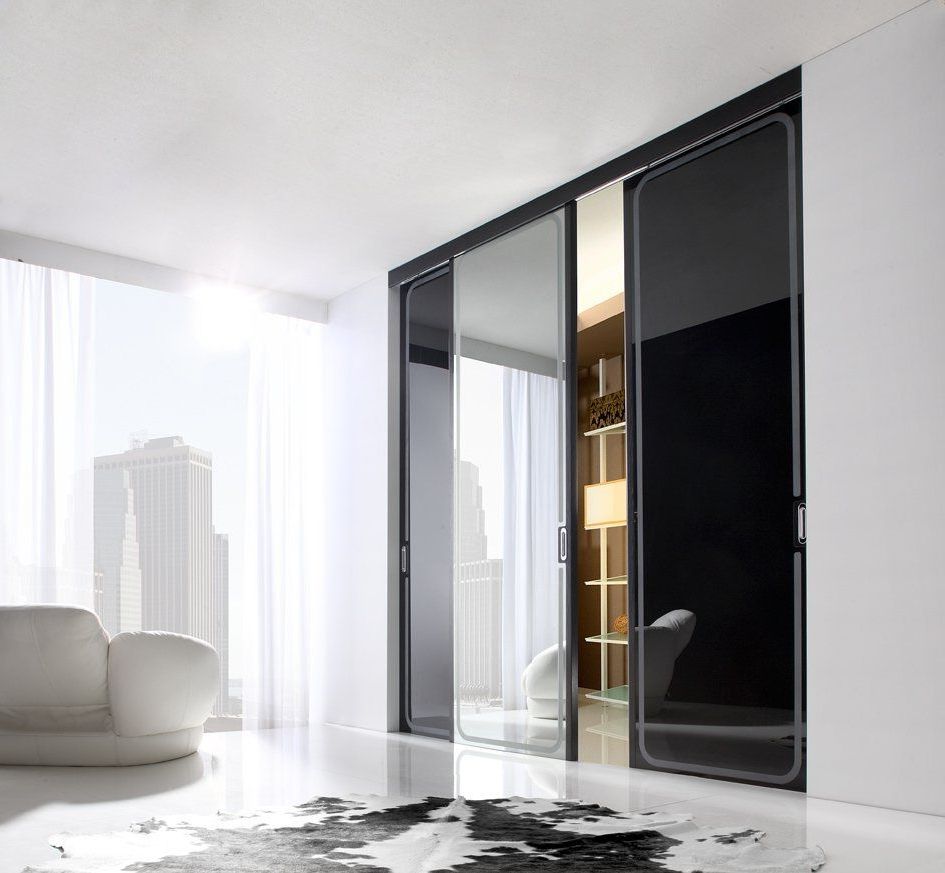 - для привнесения актуальной динамики в помещение. Чёрно-белая дверь-купе - яркое и необычное решение, и раздвижной механизм лишь подчёркивает её эксклюзивное очарование;